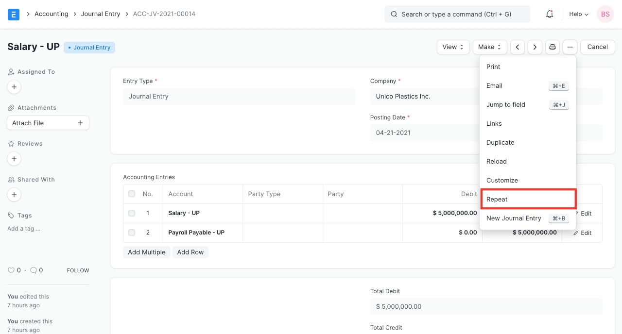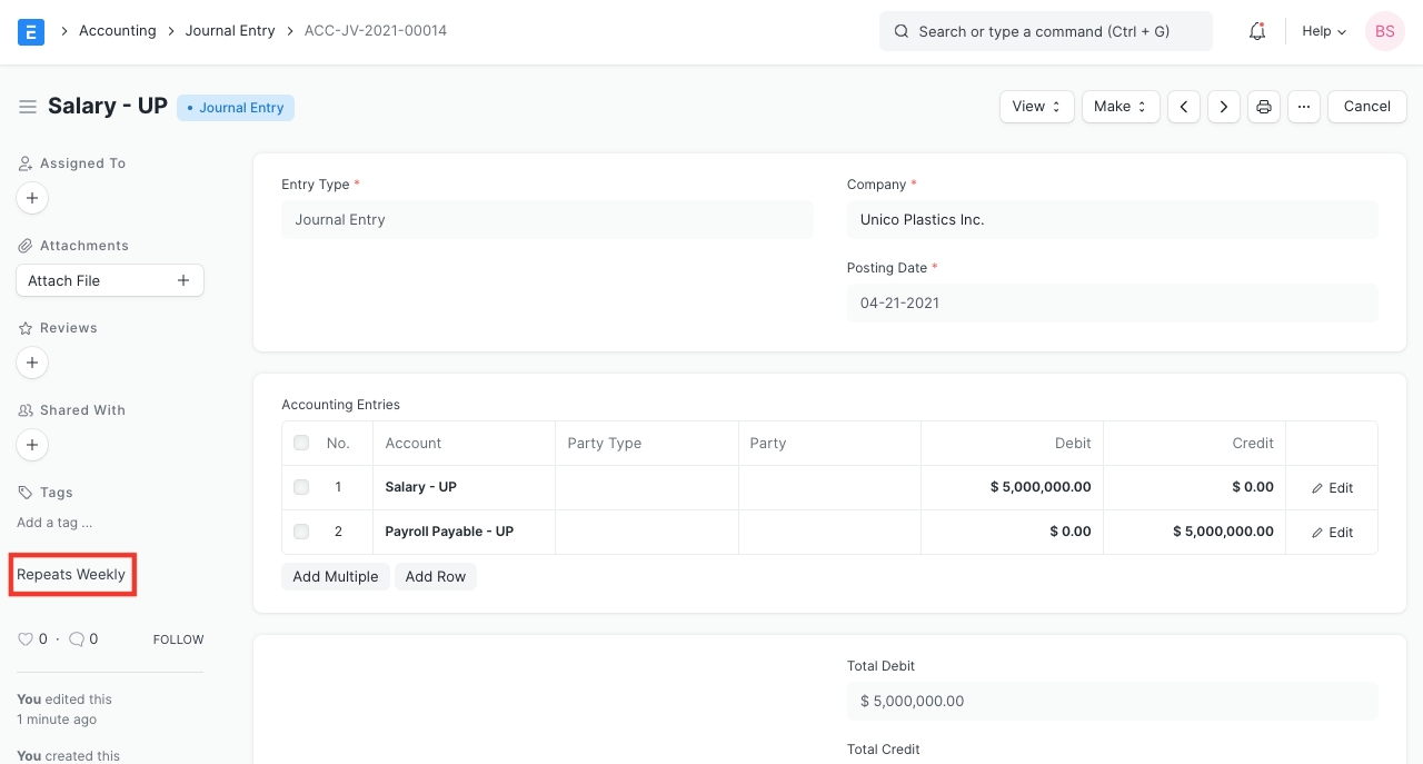 Auto Repeat feature helps you create certain documents automatically in a given time period.