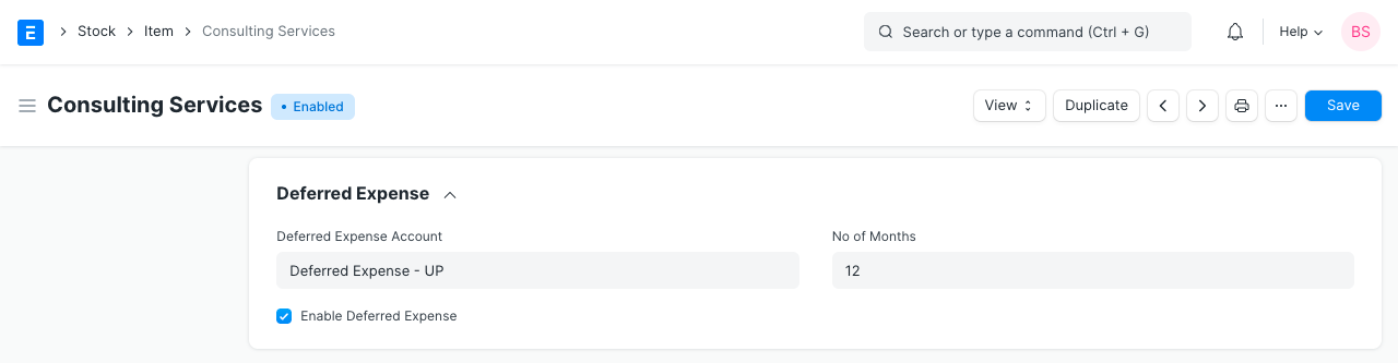 Based on the From Date and To Date set in the Purchase Invoice Item table, Journal Entries are created automatically at the end of each month. It debits the value from Deferred Expense account and credits Expense Account selected for an Item in the Purchase Invoice.