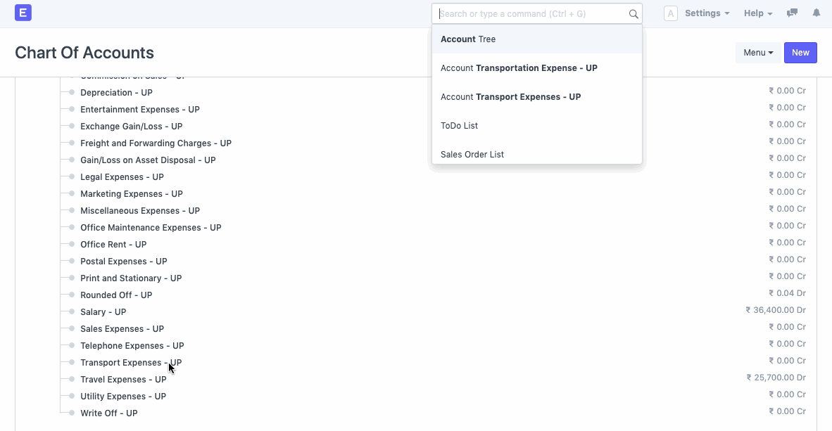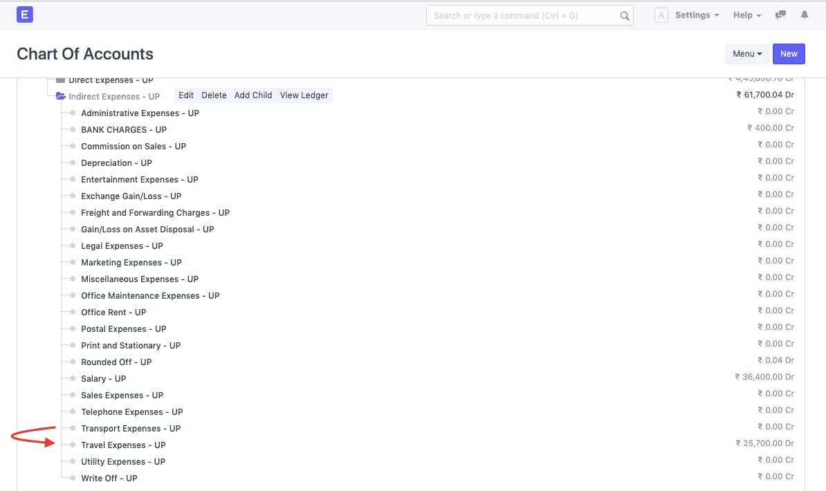 Step 1: Go to Chart of Accounts