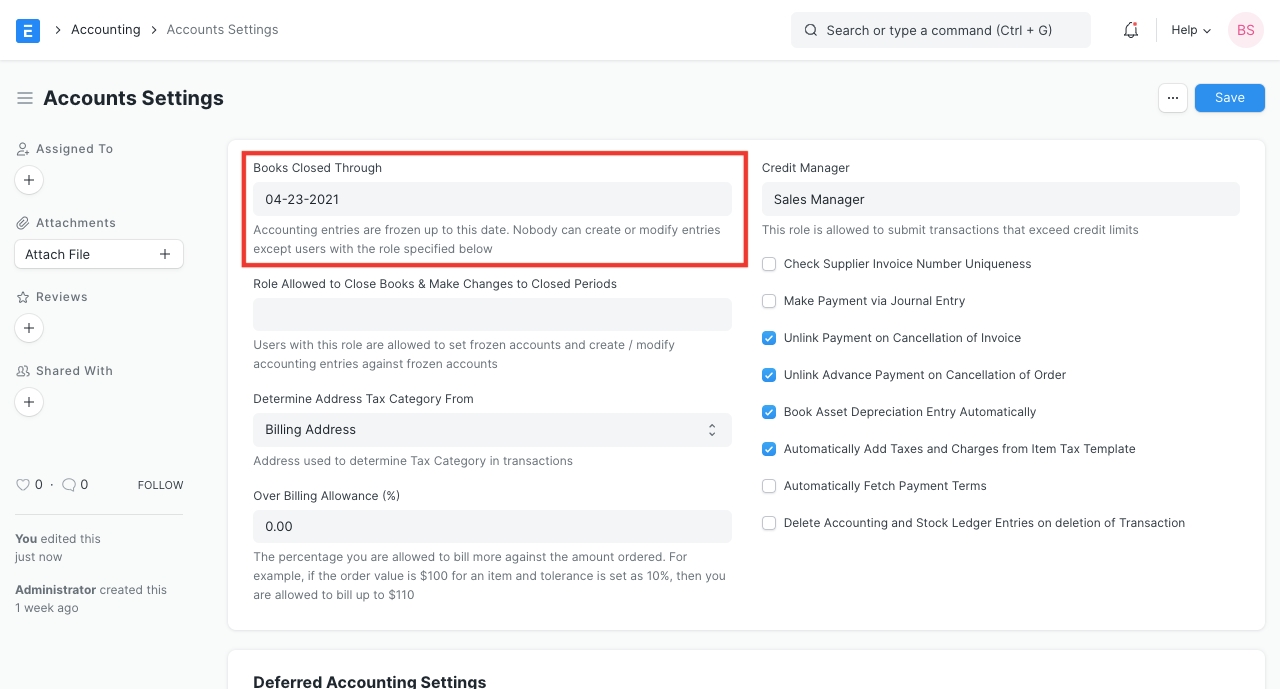 You can still allow user with certain role to create/edit entries within accounts frozen date. You can set that Role in the Account Settings itself.