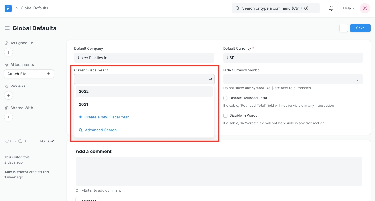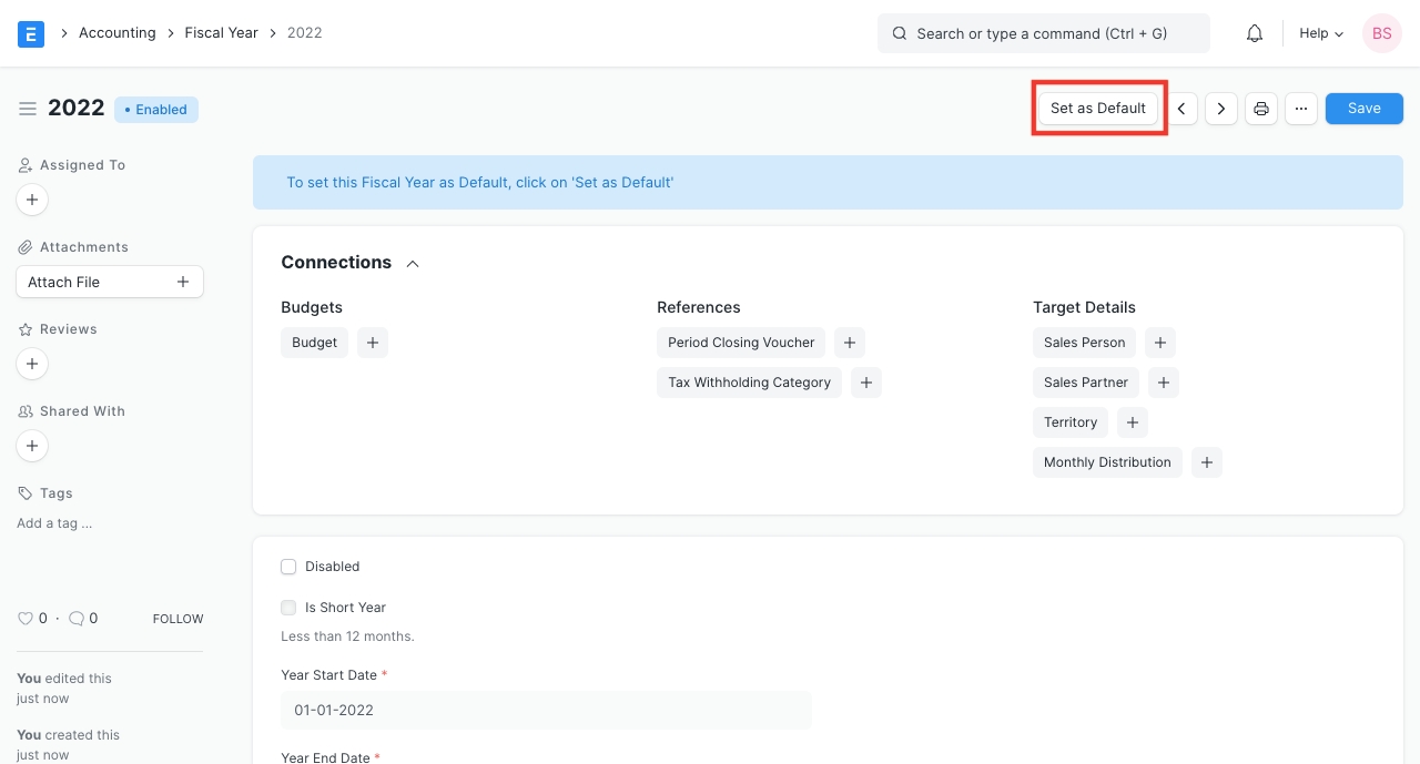 Set Fiscal Year as Default