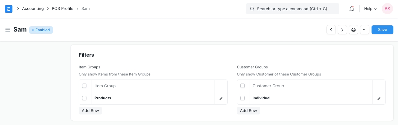 Customer: Users can sell particular products to the particular Customers from the POS by adding item groups, customer groups in the POS Profile.