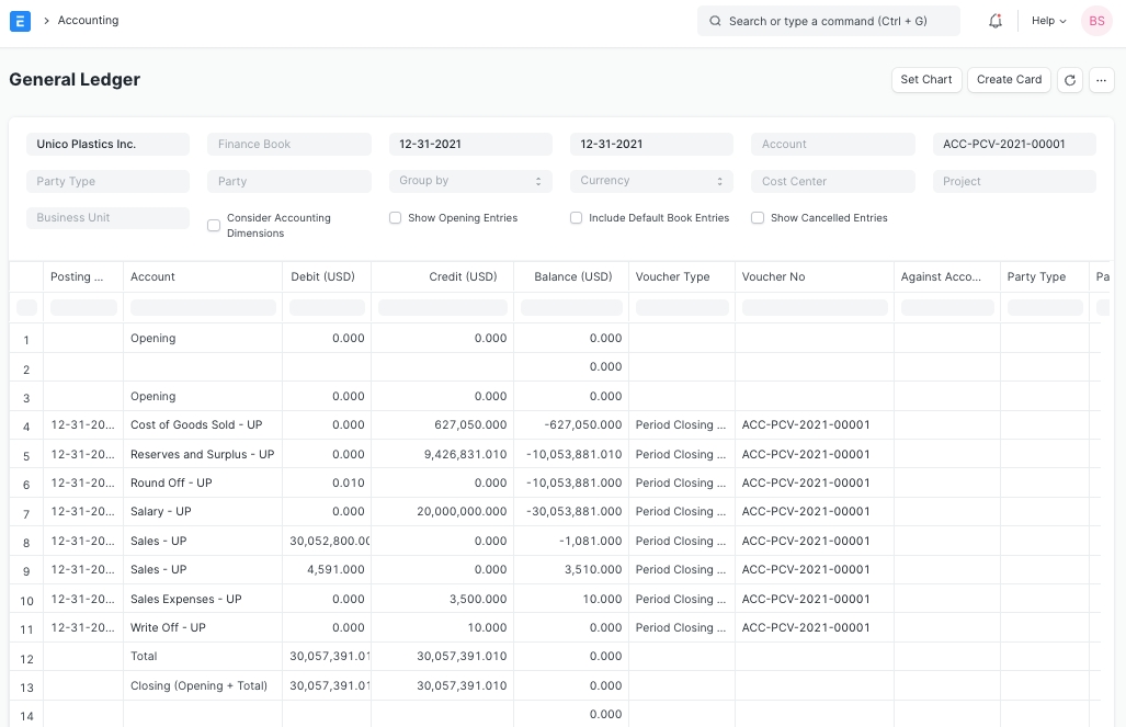 The Period Closing Voucher will make accounting entries (GL Entry).