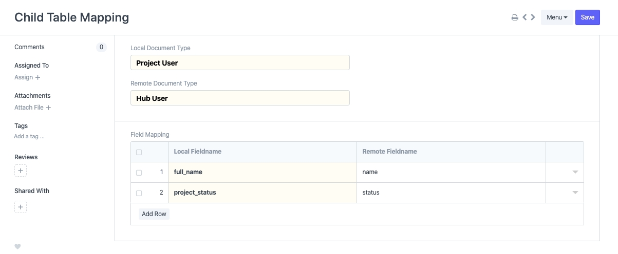 For example, let's assume that the local doctype is Opportunity and the remote doctype is ActiveBooks Opportunity. The field party_name (Link field for DocType Lead) in Opportunity is mapped to full_name (Data field) in ActiveBooks Opportunity. During the sync, this Lead has to be created for the main Opportunity to sync. So you need to set up a mapping for this Link Field too.