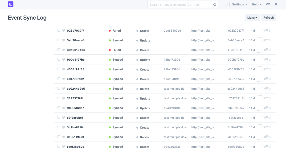 Like the Update Log, Event Sync Log logs every document synced from the Event Producer on the Event Consumer site. In order to view the Event Sync Log: