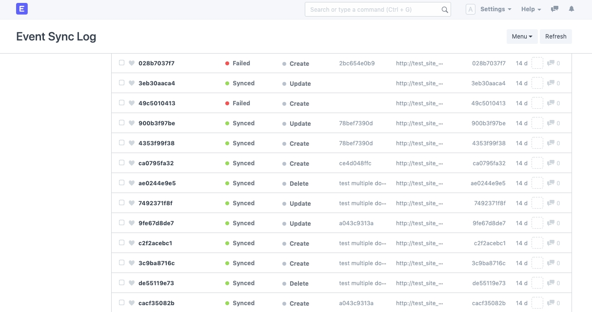 Go to: Home > Automation > Event Streaming > Event Sync Log.