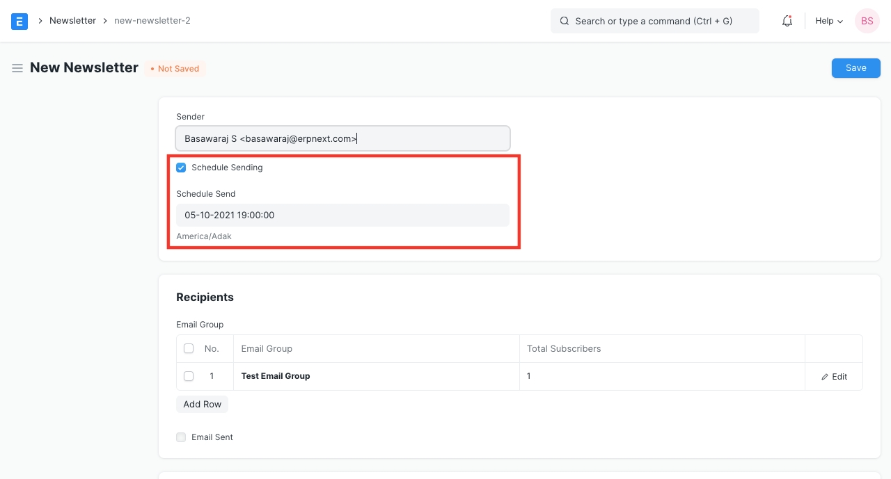You can choose to send your newsletter at any future datetime by specifying time in hourly steps.