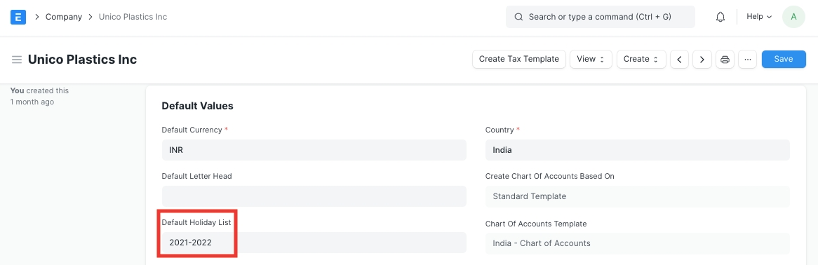 Note: If you have specified a Holiday List in the Employee master, then that Holiday List will be given priority as compared to the default Holiday List of the Company. You can form as many holiday lists as you wish. For example, if you have a factory, you can have one list for the factory workers and another list for office staff. You can manage between many lists by linking a Holiday List to the respective Employee.