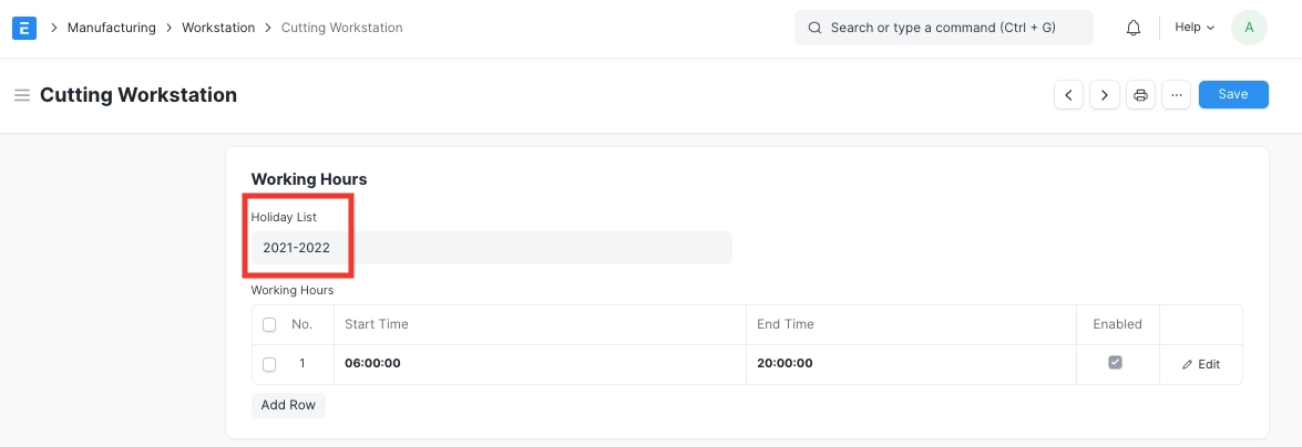 The dates in the Holiday List tagged in the Workstation master will be considered as the days the Workstation will remain closed.