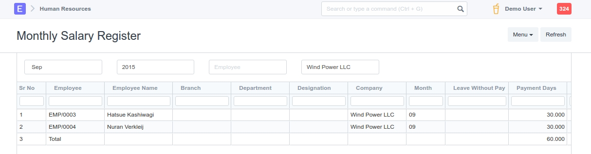 Monthly Salary Register shows net pay and its components of employee(s) at a glance.