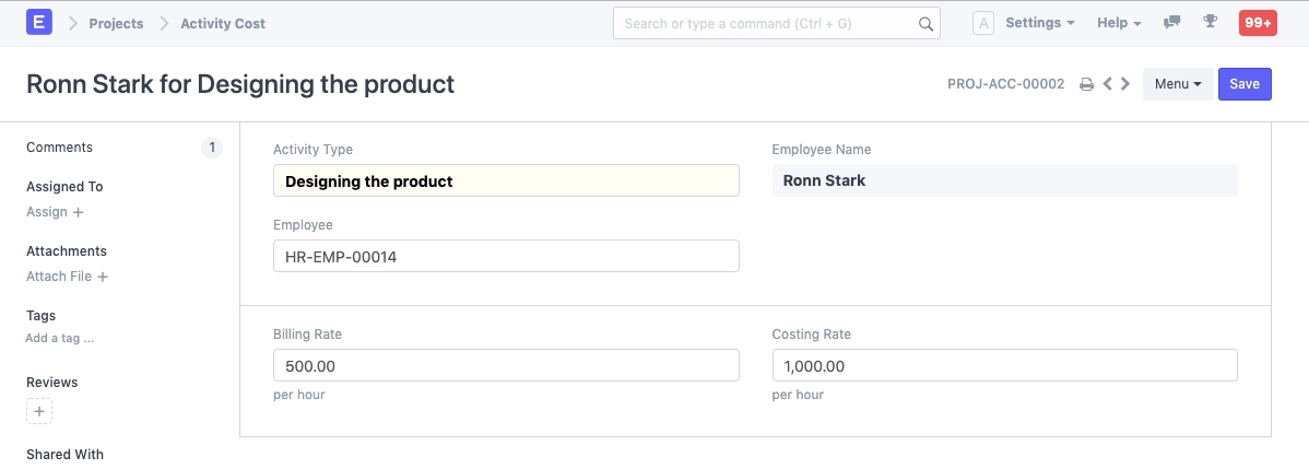 Activity Cost records the per-hour billing rate and costing rate of an Employee against a particular Activity Type.