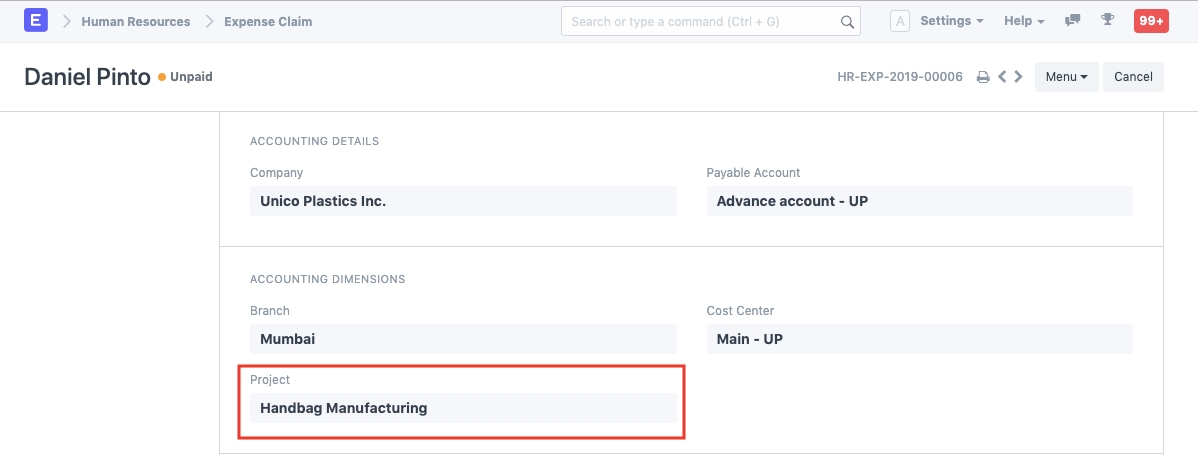 While filling up the claim, they can specify the Project for which they have made the expense.