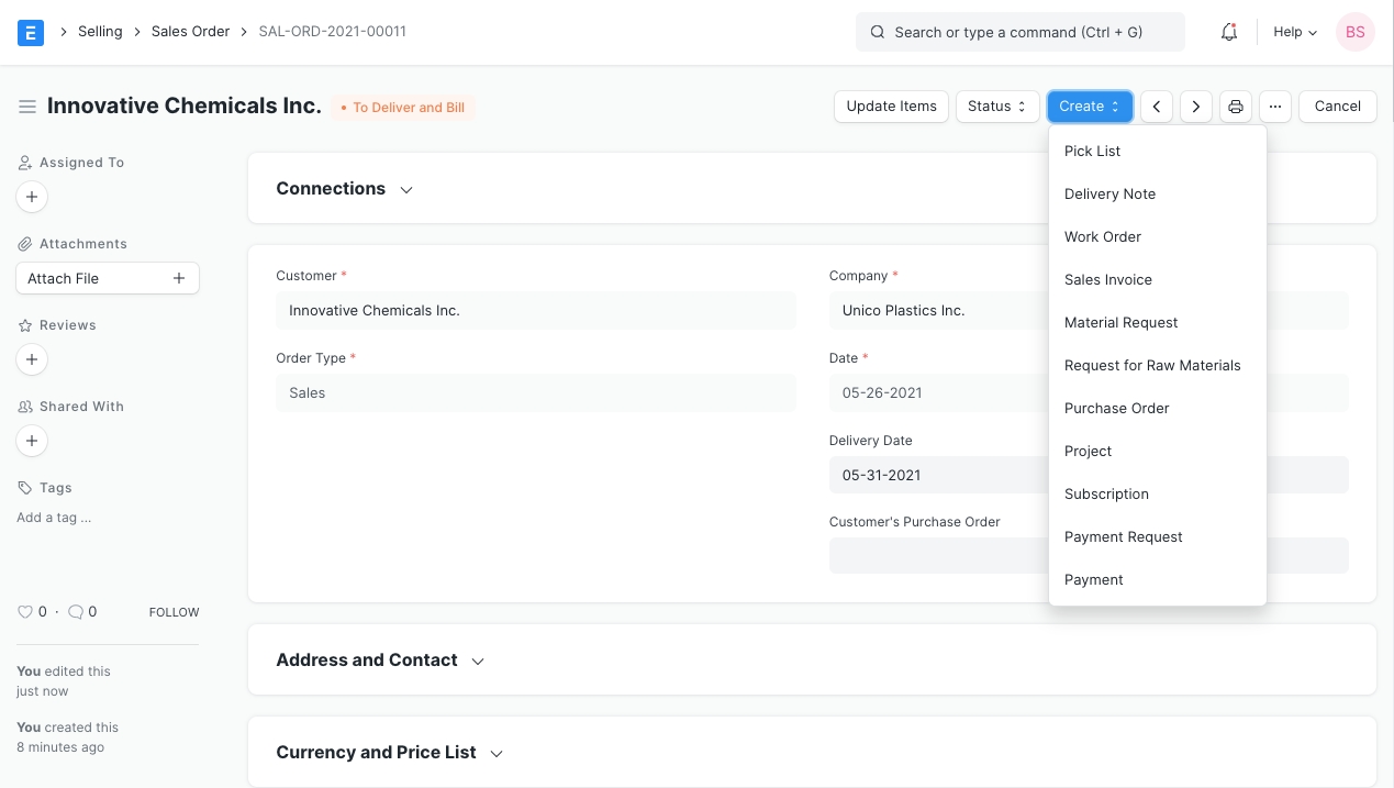 Once you “Submit” your Sales Order, you can trigger actions from the Sales Order:
