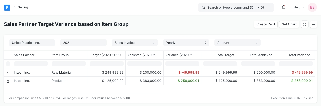 This report will provide you variance between target and actual performance of the Sales Partner based on the Sales Order / Sales Invoice / Delivery Note data. User can view this report period wise like Monthly, Quarterly, Half-Yearly, or Yearly.