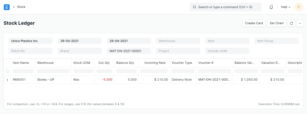 Let's say, you have an order from "Utah Automation Services" to deliver 5 nos of item "RM0001" at $300. Following are the details of Delivery Note: