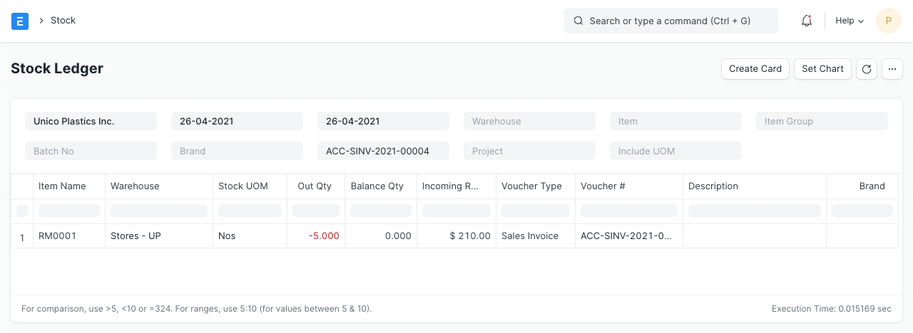 = 1125Let's say, you did not make Delivery Note against the above order and instead, you have made Sales Invoice directly, with "Update Stock" options. The details of the Sales Invoice are same as the above Delivery Note.