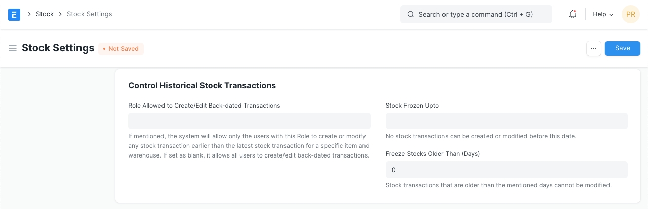 Freeze Stocks Older Than [Days]: Stocks older than x days will be frozen. This is calculated based on the creation date of the item.