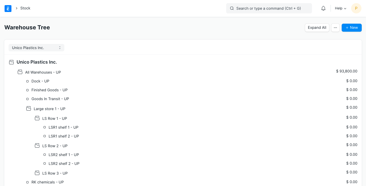 Warehouses are saved with their respective Company’s abbreviations. This facilitates identifying which Warehouse belongs to which company at a glance.