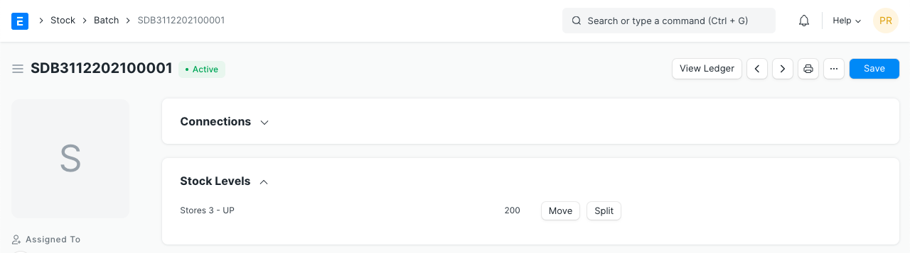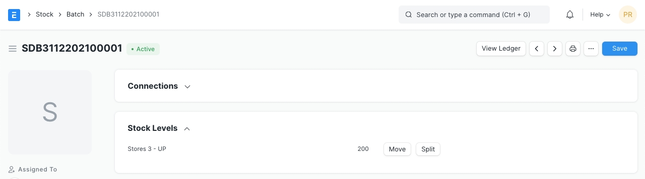 You can also split the batch into smaller one by clicking on the Split button. This will create a new Batch based on this Batch and the quantities will be split between the batches.