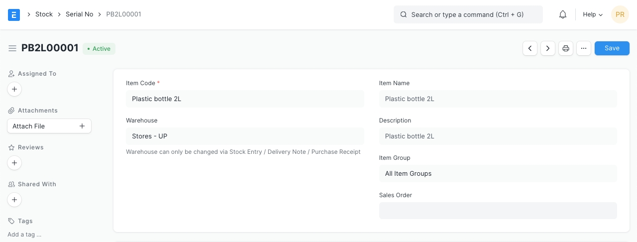 If the Serial No was generated from a Sales Order, the Customer will be linked here.