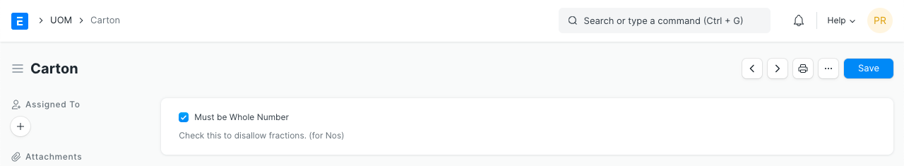 You can configure if particular UoM can have value in decimal place or no. By default, value in decimal places will be allowed for all the UOMs. To restrict decimal places or value in fraction for any UoM, you should follow these steps.