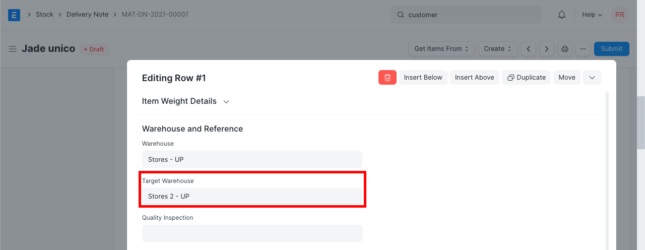 In the Customer Warehouse, select a Warehouse where Material is to be transferred or select a target warehouse.