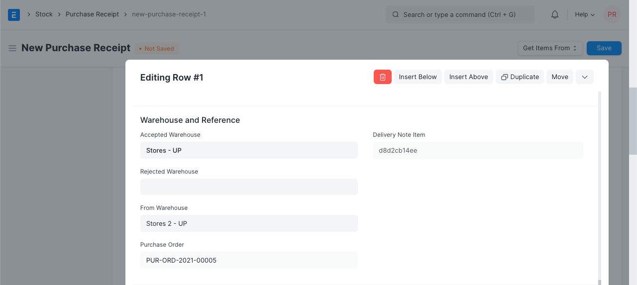 Following are the steps to use Purchase Receipt for creating Material Transfer Entry.